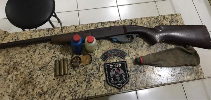 Por volta das 22h, a guarnição militar rondava na Rua do Mocambinho quando observou um homem em atitude suspeita. Os policiais realizaram a abordagem e revista pessoal ao suspeito (de 39 anos) e encontraram uma espingarda, calibre 28, com duas munições intactas e uma deflagrada, pólvora, espoletas e chumbo.
