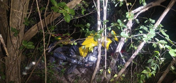 Após diligências, por volta das 19h, os policiais da equipe Força Tática localizaram a motocicleta roubada escondida em um matagal no bairro Caldeirões.