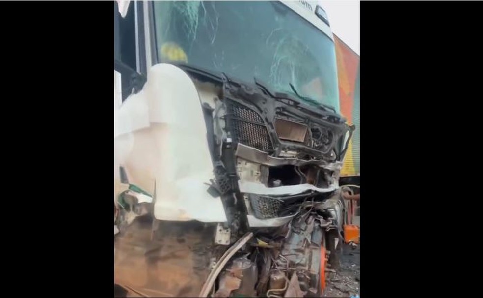 Segundo a Polícia Rodoviária Federal (PRF), as informações preliminares apontam que o motorista do caminhão teria tentado fazer uma ultrapassagem proibida. Por não conseguir concluir a manobra e nem retornar à faixa de origem, o veículo acabou prensado entre duas carretas, uma que seguia no sentido contrário e outra que ele tentava ultrapassar.