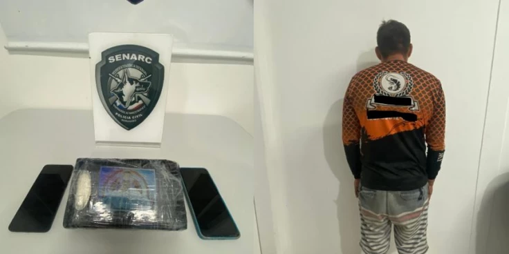 Diante das informações, a equipe de investigação e captura da Superintendência Estadual de Repressão ao Narcotráfico (Senarc) foi ao local indicado e observou a presença de alguns suspeitos os quais, ao perceberam a presença da polícia fugiram do local. No entanto, um dos homens acabou detido, sendo que com ele havia um tablete da cocaína.