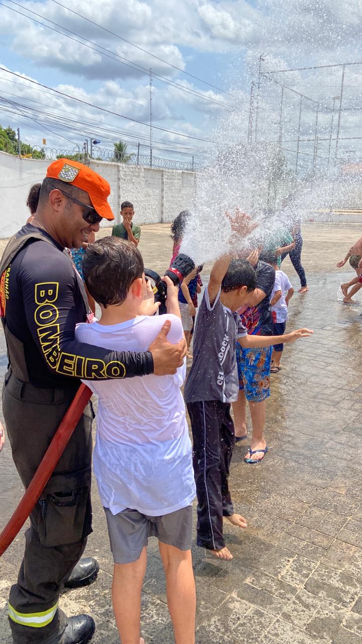 A programação contou com brincadeiras, jogos, distribuição de lembranças, lanche especial e a presença de um personagem infantil, que animou a garotada. O ponto alto da manhã foi a participação da guarnição do Corpo de Bombeiros, que proporcionou um banho coletivo, garantindo sorrisos e muita diversão para as crianças.