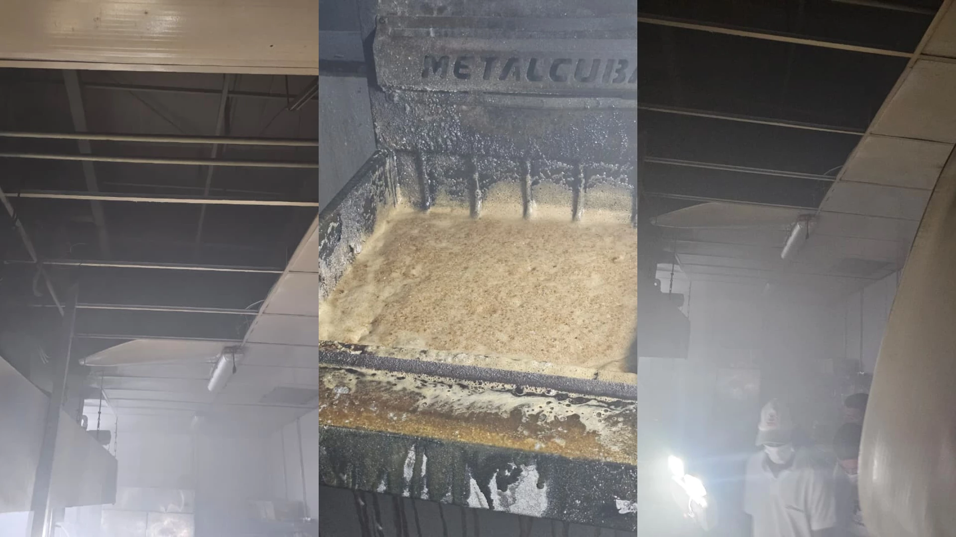 O fogo teve início por boilover, fenômeno que ocorre quando óleo superaquecido entra em contato com água, provocando expansão repentina e chamas intensas. Segundo o registro dos bombeiros, o caso aconteceu em uma frigideira utilizada na cozinha do estabelecimento.