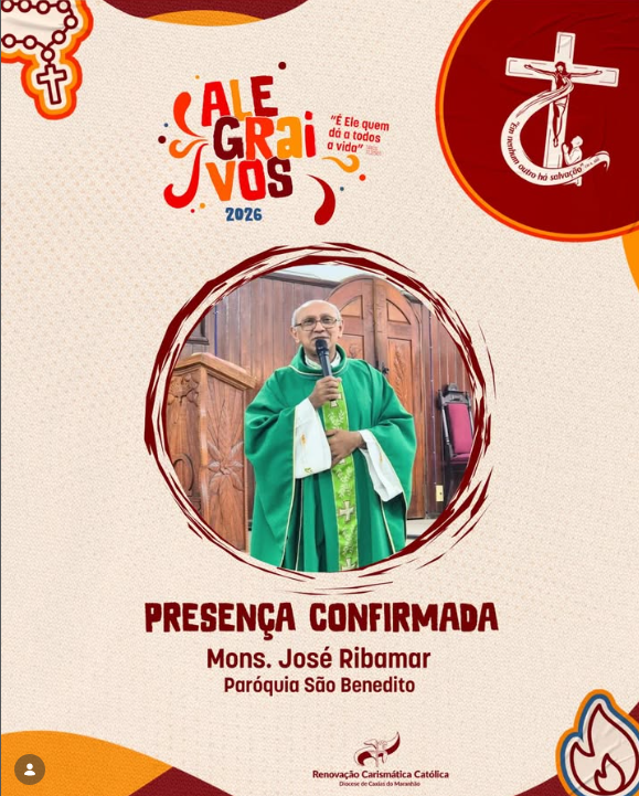 A organização do Alegrai-Vos 2026, tradicional encontro promovido pela Renovação Carismática Católica (RCC), já confirmou a participação de importantes nomes da Igreja Católica para esta edição do evento em Caxias.