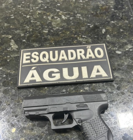 Diante da situação, a guarnição iniciou acompanhamento tático e conseguiu impedir a fuga dos suspeitos, realizando a abordagem. Durante a busca pessoal, foi encontrado com o garupa um simulacro de arma de fogo e um aparelho celular que havia sido subtraído minutos antes na Rua Abeu Antunes.