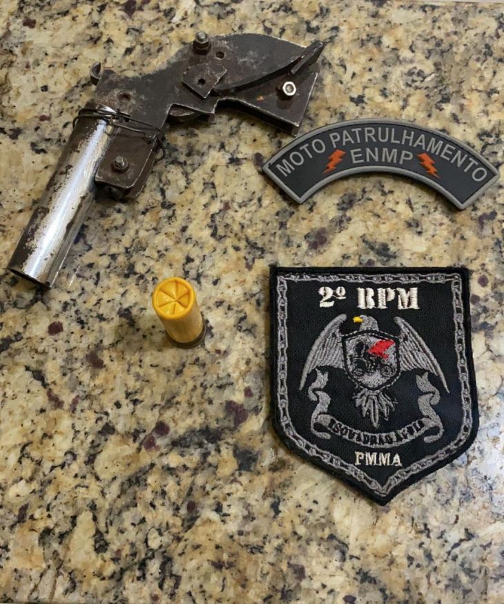Por volta das 20h, os policiais faziam incursões na Avenida Alexandre Costa quando avistaram dois homens em uma motocicleta que tentaram empreender fuga. Os PMs interceptaram a dupla (com 20 e 21 anos) e durante a abordagem e revista pessoal encontraram uma arma de fogo de fabricação artesanal, calibre 20, municiada com um cartucho.